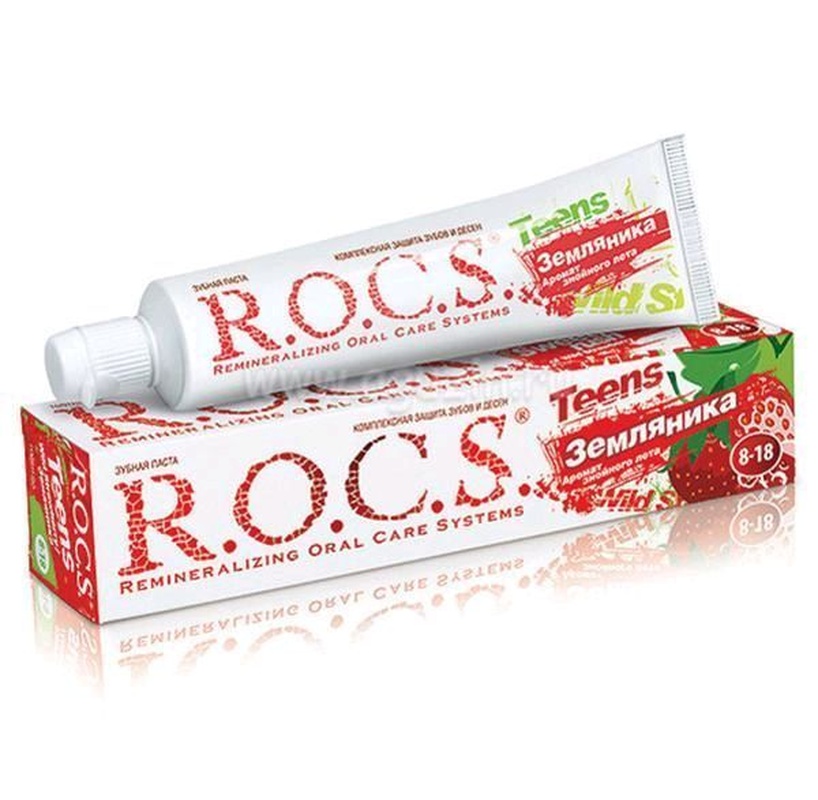 Зубная паста R.O.C.S. Teens Аромат знойного лета со вкусом земляники — это прекрасное сочетание земляники с мятой, которое способствует продолжительной чистке зубов. В школьном возрасте продолжается процесс созревания эмали (до 18 лет), который можно поддержать, применяя зубные пасты, содержащие фтор и ксилит. R.O.C.S. для младших школьников и подростков содержит высокоэффективный комплекс AMIFLUOR — источник ксилита и аминофторида, который обеспечивает быстрое, всего 20 секунд, формирование высокостабильного защитного слоя. Зубная паста R.O.C.S. Teens Аромат знойного лета:  повышает устойчивость молодой эмали зубов к растворяющему действию кислот более чем в 2 раза  Снижает выход кальция и фосфора из эмали зубов  Способствует интенсивному насыщению зубов минералами, ускоряя процесс созревания эмали  Защищает зубы от кариесогенных бактерий за счёт высокого содержания ксилита  Обеспечивает надёжную защиту дёсен от воспаления, по эффективности защиты десен не уступает зубным пастам с антисептиком  Выполняет функцию пребиотика и нормализует состав микрофлоры полости рта  Благодаря мягкой низкоабразивной формуле (RDA=39) не травмирует ткани зубов  Не содержит лаурилсульфат натрия .