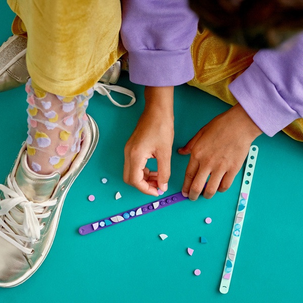 Придумай самый невероятный дизайн с Новыми наборами серии 1! Придумай бесконечное множество самых невероятных узоров и комбинаций с помощью этих забавных деталек, в том числе прозрачных блестящих и декорированных деталек. Ты можешь использовать их для украшения Браслета LEGO® DOTS™ или в придуманном тобой декоре комнаты, чтобы выразить себя и проявить свои творческие способности. Ну что, ты готов включить своё воображение? Придумай самый невероятный дизайн!