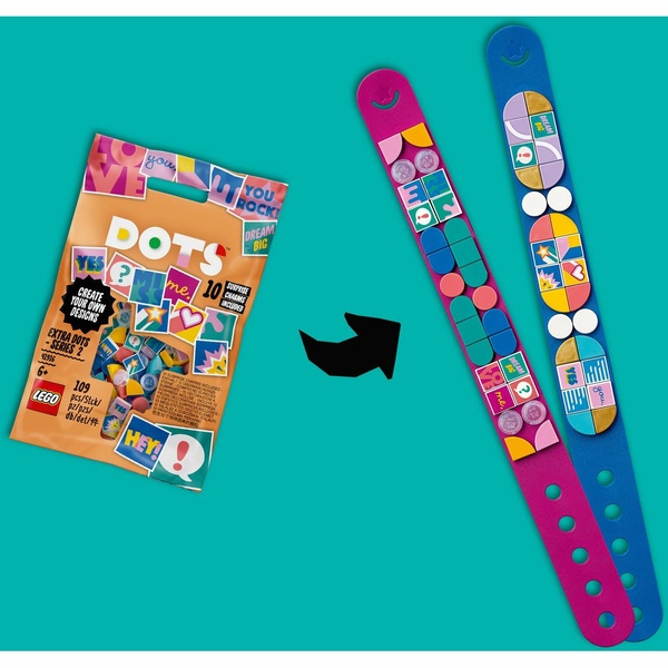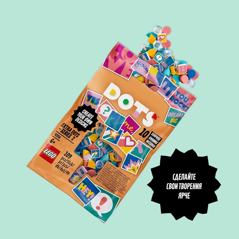 Набор Тайлы LEGO® DOTS серия 2 для создания собственного дизайна. Придумай самый невероятный дизайн с новыми наборами LEGO® DOTS серии 2! Создай бесконечное множество узоров и комбинаций с помощью этих забавных деталек, среди которых ты найдёшь даже перламутровые детальки и детальки с оригинальным орнаментом. Укрась ими свой браслет или элементы декора LEGO® DOTS, чтобы выразить свой внутренний мир. Ну что, ты готова проявить свои творческие способности? Придумывай самые невероятные дизайны, украшай свою жизнь самыми разными способами, неверных решений не бывает! Поощрите любовь детей к творчеству с помощью этого набора, включающего в себя 79 плиток четырёх разных цветов, 20 перламутровых плиток с блёстками и 10 из 16 декорированных плиток. Откройте упаковку, чтобы узнать, какие из них достались вам!