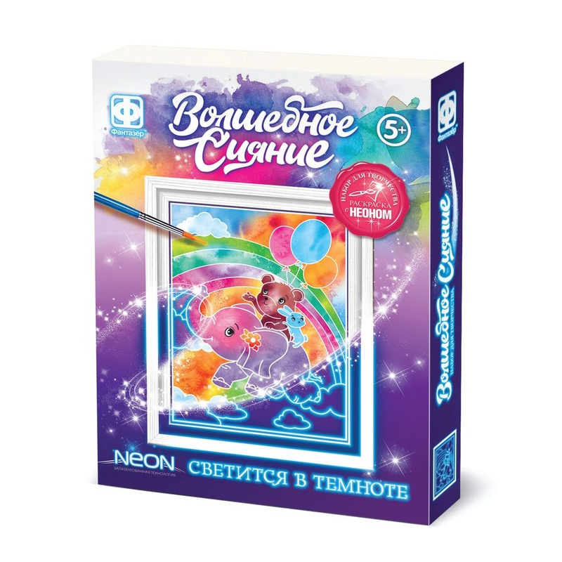 Наша волшебная акварель получила ещё одно свойство - она светится в темноте! Внутри упаковки вы найдёте акварельные краски и лист для раскрашивания со специальным контуром. Этот контур незатекаемый для краски, поэтому вы смело можете раскрашивать картинку либо как захочется по цвету, либо вообще радужной заливкой. Контур всё равно проявится и сделает картинку красивой. Помимо этого, если посмотреть на картинку ночью, контур начнет светиться и превратит её в настоящее чудо - она будет светиться в темноте! И даже если она потом погаснет не расстраивайтесь! Утром зарядите её новой порцией света! В наборе: бумага с нанесенным неоновым контуром, краски акварельные, кисточка, краска акриловая для рамки, бумажное паспарту, деревянная рамка. Состав: дерево, картон, краски, кисть, бумага. Рекомендовано для детей от 5-ти лет.