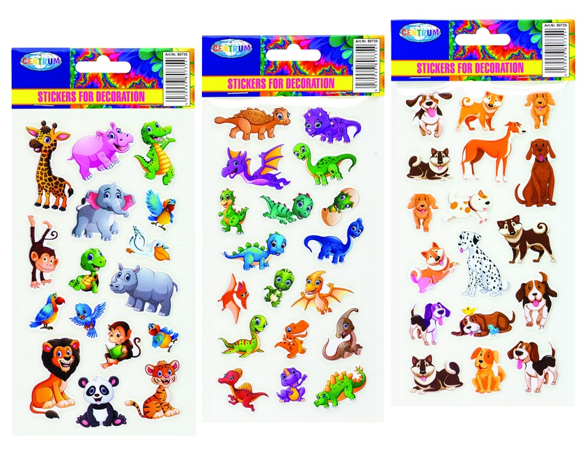 80735 Декоративные наклейки объёмные, 3 дизайна, размер в упаковке 10*23 см