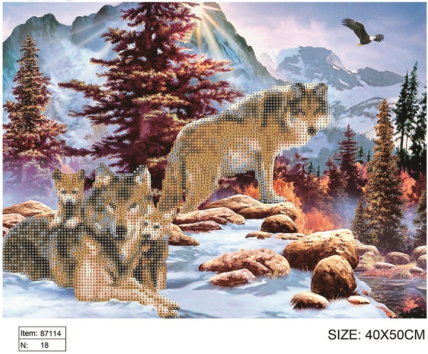 87114 Алмазная мозаика Волки, размер 40*50 см, без подрамника, частичная выкладка