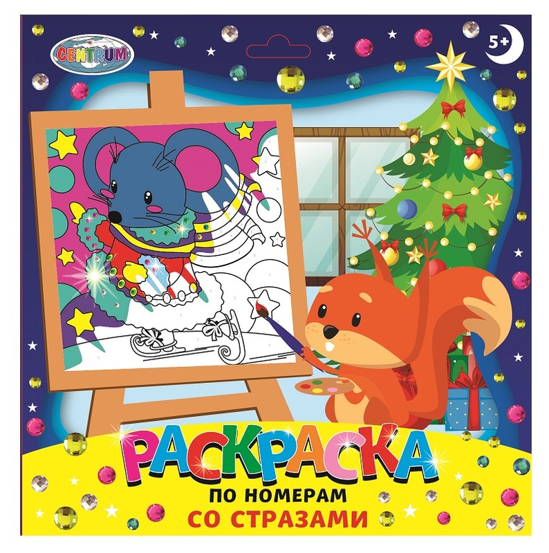 Нет в наличии Отсутствует90962 Картинка по номерам со стразами Мышка Зимняя серия, гуашь 6 цветов, стразы, кисточка