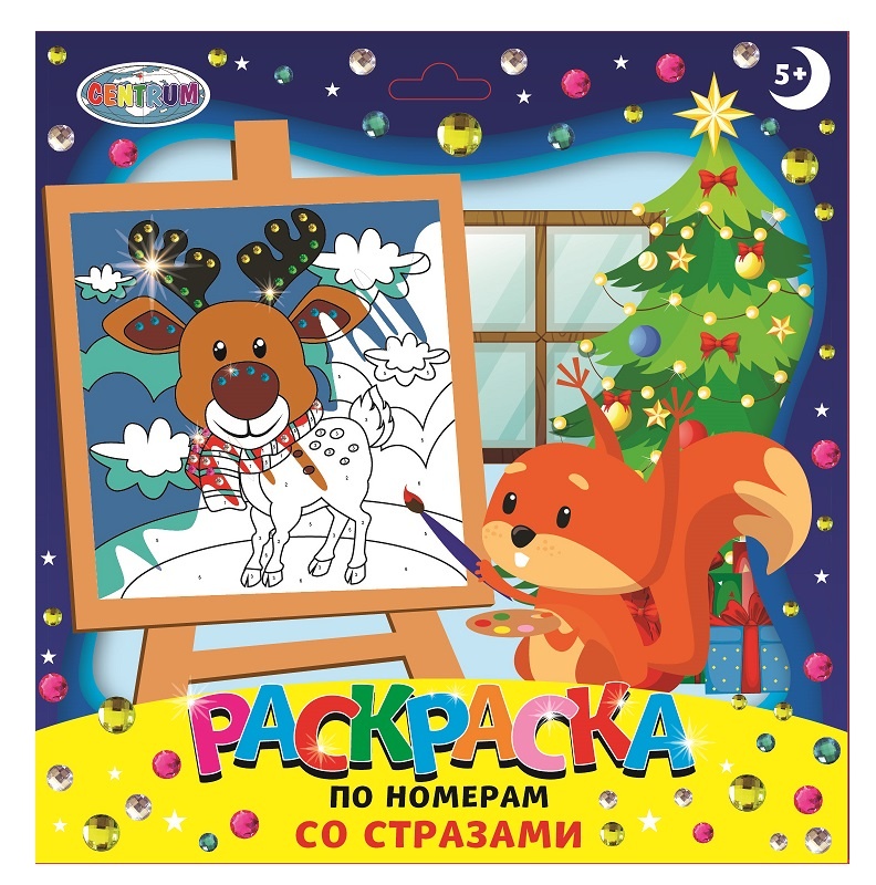 Нет в наличии Отсутствует90964 Картинка по номерам со стразами Олень Зимняя серия, гуашь 6 цветов, стразы, кисточка