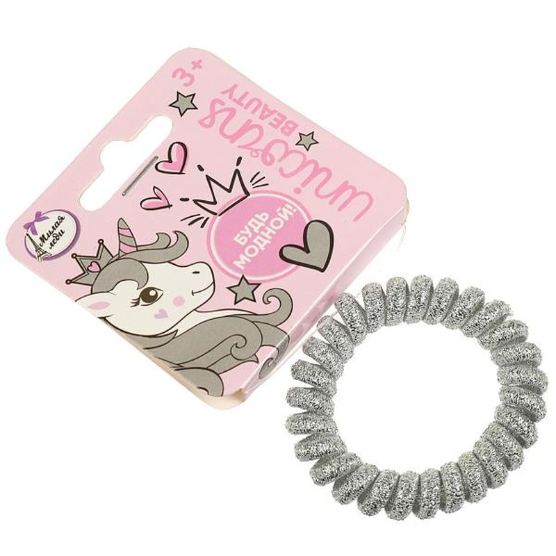 Аксессуары д/девочек резинка-пружинка для волос серебристая, 1 шт.