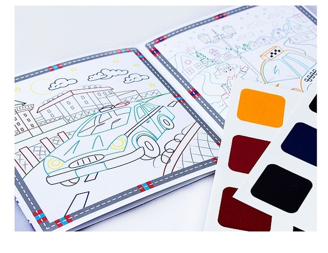 Супер раскраска, длиной 990 мм. 10 раскрасок в одной + набор акварельной краски.