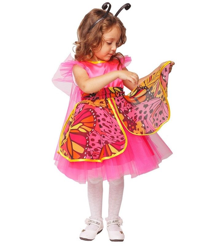 Нет в наличии ОтсутствуетОсобенности: Подъюбник для пышности Верхняя юбка в виде крыльев бабочки Фатин на задних крыльях, рукавах и подоле Усики бабочки на ободке Характеристики: Материал: полиэстер Размеры: 26-32 Рост: 104-128