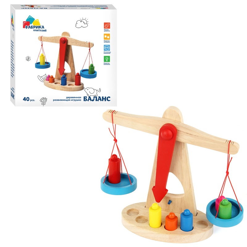 Деревянные весы - простой и увлекательный способ научить малыша сравнивать предметы по параметрам больше-меньше, вес и размер. С такими весами можно измерять не только гирьками, но и класть другие детальки или игрушки, узнавая, что весит больше, а что меньше. Играя, малыш учится сравнивать предметы не только по цвету, виду или другим характеристикам, а также вводит новое для себя понятие - «вес». Игрушки изготовлены из натурального дерева и являются гипоаллергенными и безопасными для вашего ребёнка. Игра предназначена для возраста 3+.
