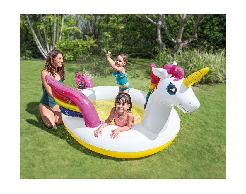 Бассейн "Единорог" с распылителем, 272х193х104 см INTEX