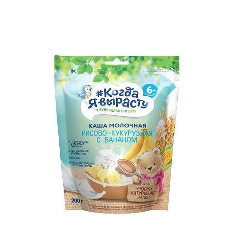 (БЗМЖ) Каша Когда я вырасту мол. фруктовая РИС КУКУРУЗА БАНАН дой пак, 200 гр.