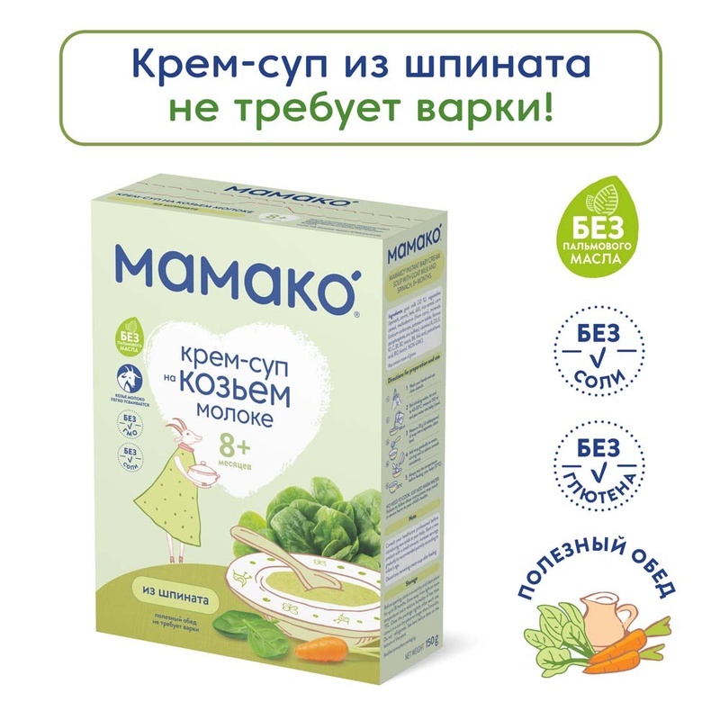 (БЗМЖ) Крем-суп Мамако из шпината на козьем молоке 150 гр./8