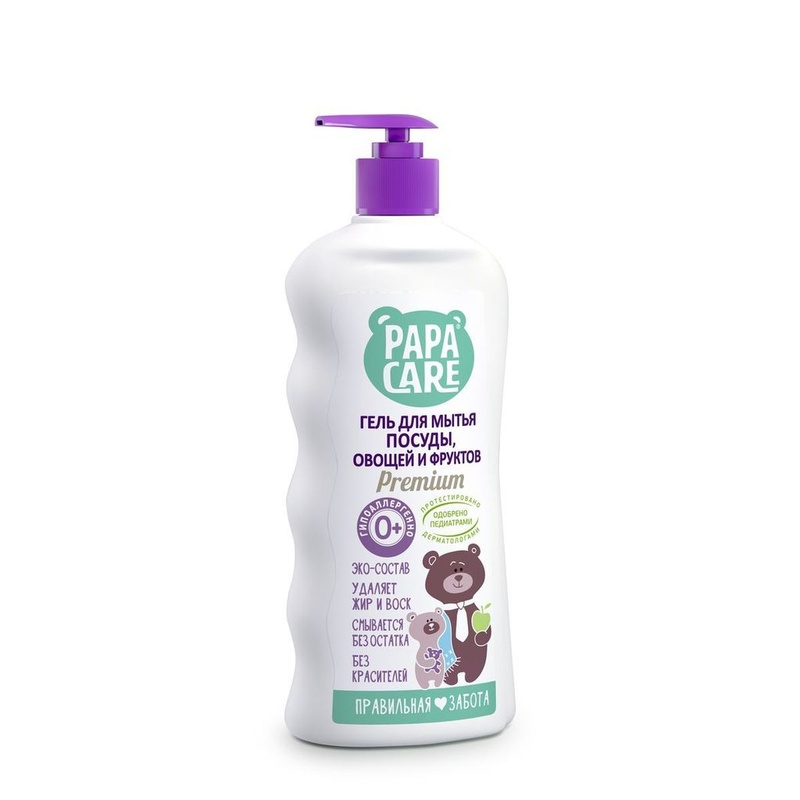 Нет в наличии ОтсутствуетГель-бальзам Papa Care для мытья овощей, фруктов, посуды и игрушек идеально подойдет для мытья детской посуды и игрушек, в том числе пластиковых, деревянных, резиновых и металлических, а также овощей и фруктов. Отлично удаляет жир даже в холодной воде, убирает следы парафина и воска с овощей, фруктов и зелени. Используя этот гель, не надо надевать перчатки, так как он не сушит кожу рук. Благодаря наличию дозатора концентрированный гель очень экономично используется.