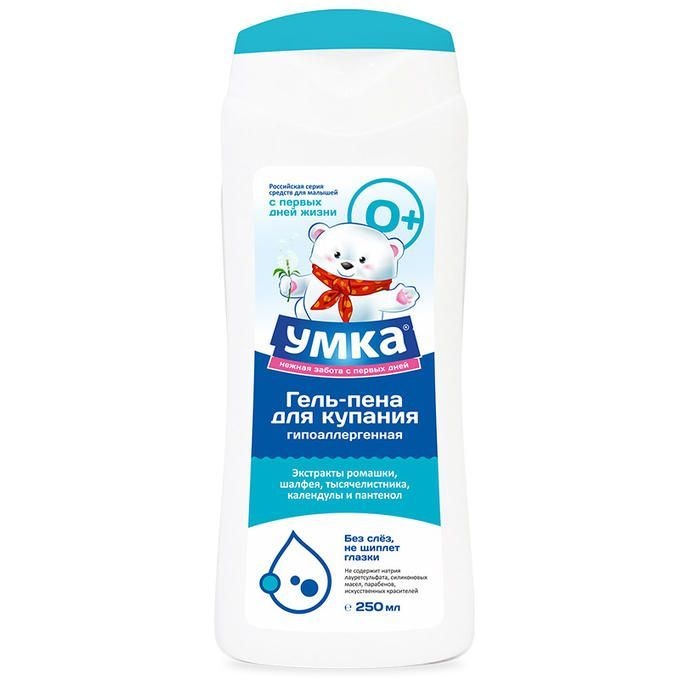 Нет в наличии Отсутствует· Гель-пена для купания "Умка", гипоаллергенная, 250 мл · Гипоаллергенная гель-пена для купания создана специально для ежедневного очищения чувствительной кожи малышей. Она содержит уникальную комбинацию натуральных ингредиентов, которые увлажняют и успокаивают чувствительную детскую кожу. Во время купания гель-пена поддерживает необходимый уровень увлажненности кожи, защищая ее от сухости. Удобный формат позволяет использовать ее и как пену для ванны, и как гель для купания · Страна изготовления Россия