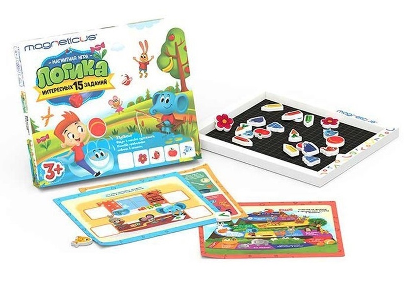 Нет в наличии ОтсутствуетИгровой набор – Логика, Magneticus, POL-016 Развивающий набор «Логика» от компании «Magneticus» это комплект магнитных элементов со специальным встроенным в упаковку полем, на котором можно выполнять задания на развитие логического мышления или играть в увлекательную игру-ходилку. Ребенок весело и с пользой проведет свой досуг, приобретая новые знания и навыки. Особенности: - Набор поможет детям дошкольного возраста выявлять закономерности, понимать причинно-следственные связи, научит рассуждать и мыслить логически. - Набор представлен элементами, благодаря которым можно наработать новые навыки разными способами — с помощью игр и заданий. - Коробку со встроенным металлическим игровым полем и магнитными элементами всегда можно взять с собой в путешествие, чтобы разнообразить досуг ребенка в пути. - В описании 15 игровых заданий на предлагаемую тематику и игра ходилка. - В процессе занятий ребенок сможет проявить воображение, придумывая новые игры, используя яркие элементы. - Составляющие набора выполнены из высококачественных материалов, абсолютно безопасных для детей. Характеристики: Комплект: 28 магнитных элементов,15 игровых заданий на тему «Логика», встроенное металлическое игровое поле, игра-ходилка. Возраст: от 3 лет. Состав: магнитный винил, эва, металл, бумага, картон. Вес: 30 гр. Размеры упаковки: 22 х 4 х 26 см. Упаковка: картонная коробка. Производитель: Magneticus. Страна обладатель бренда и производитель: Россия.