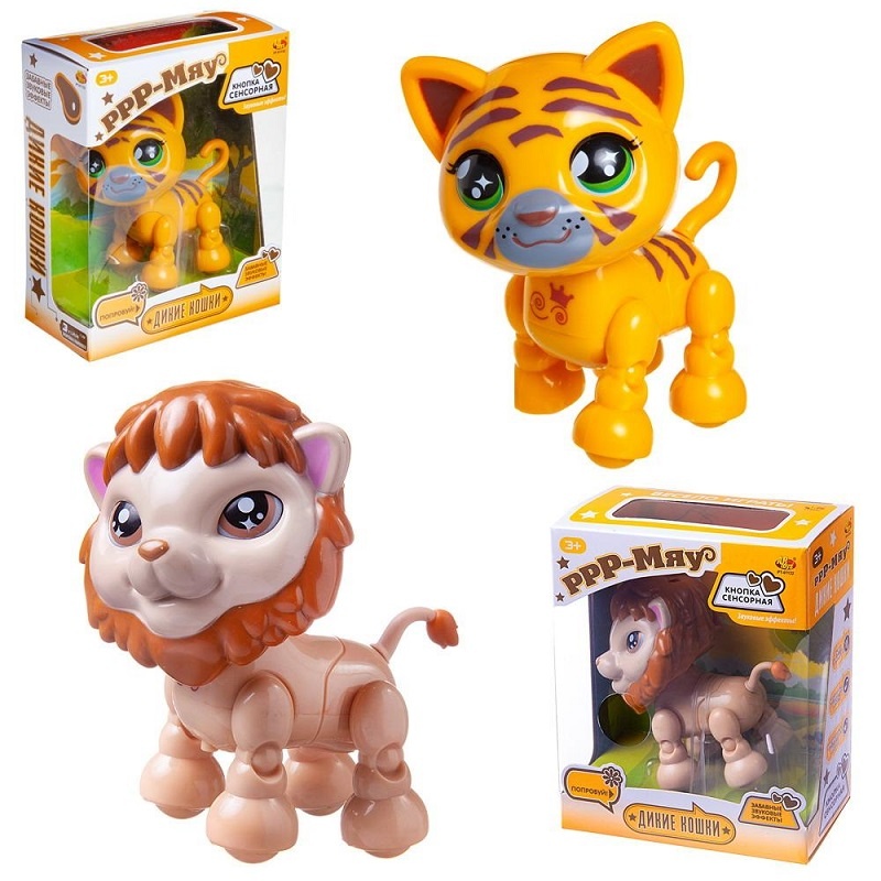 Игрушка. изображающая животных "Маленькие дикие кошки", со звуковыми эффектами материал: полимерные материалы 3 батарейки "AG13" в комплекте