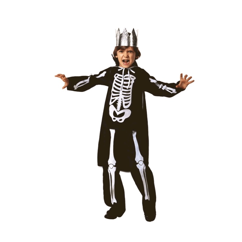 Карнавальный костюм Кащей Бессмертный Арт. 7023 Наряд Кащея Бессмертного подойдет тем мальчикам, которым нравятся русские сказки, но добрые образы им всегда казались скучными. Ваш ребенок относится к таким непоседам? Тогда костюм Кащея Бессмертный подойдет ему идеально! В комплект входят куртка и брюки с иллюстрированными костями, плащ и корона. Материал: Текстиль Назначение: Карнавал Комплектация: куртка, брюки, плащ, корона. Бренд Батик Страна-изготовитель Россия.