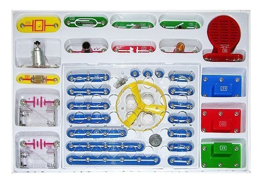 Описание Электронный конструктор "Знаток" это игра, тесно соединяющая знания о физическом мире, удовольствие и практическую полезность. Собирая те или иные электрические цепи, можно отдыхая, познакомиться с удивительным миром электроники. - Эта покупка на долгие годы, т.к. по мере взросления ребенок будет открывать для себя все новые и новые возможности электроники (реально до 11 класса средней школы). - Это не только игрушка, но и мощный обучающий инструмент, способный помочь в освоении школьной программы. - Многие схемы носят не только познавательный характер, но и пригодны для практического использования, наглядно демонстрируя работу электрических цепей. - Оригинальный очень простой способ соединения деталей. Не надо паять и, следовательно, вдыхать вредный дым с примесями припоя. - Даже если ребенок сейчас не сможет собирать предложенные схемы, то Вы можете это легко сделать сами и порадовать ребенка массой забавных электронных игрушек. Заодно повысить свой авторитет. - В конструкторе использована ударопрочная, экологически чистая пластмасса, надежные соединительные элементы, самые современные электронные компоненты. Схемы могут собираться на прилагаемой специальной платформе или просто на столе, т.е. одновременно может собираться несколько разных схем разными людьми. Набор состоит из ряда компонентов-электронных блоков и проводов различной длины - на каждом имеется номер в рамке. В комплекте прилагается руководство с цветными иллюстрациями и описаниями 180 схем. Электрические схемы - это многослойная структура, каждый слой которой (от 1 до 4-х) может включать компоненты-блоки и провода. Оригинальный способ соединения деталей. Не требует пайки. В схемах используется ручное, магнитное, световое, водяное, звуковое, электрическое, а также сенсорное управление. Собрав схему, можно получить акустический, оптический или электрический выходной сигнал. Схемы с похожими названиями построены при помощи совершенно различных цепей и позволяют увидеть все многообразие электронных технологий. В руководстве для каждой схемы приводится только один способ сборки. Конструктор содержит десятки компонентов, позволяющих собирать тысячи разнообразных электрических цепей.