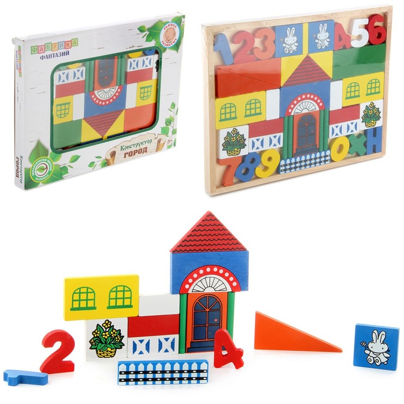 Конструктор состоит из рамки с фигурками разного размера, формы и цвета, которые можно менять местами. Подбирая элементы, ребенок будет собирать конструктор снова и снова, и каждый раз получится что-то новое. В увлекательной игровой форме ребенок знакомится с цифрами, счетом, фигурами, цветом, объемом, размером и понятиями ""больше"", ""меньше"", ""часть"", ""целое"". В процессе игры малыш развивает координацию и точность движений, пространственное мышление, навыки конструирования, память и воображение, мелкую моторику рук. Игра выполнена из экологически чистого и долговечного материала - дерева. Все детали игрушки очень качественно обработаны, не имеют острых углов, сколов и зазубрин.