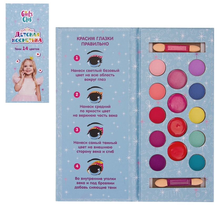 Косметика для детей "Girl's Club", в наборе: тени, блеск для губ, аппликаторы, блестящая упаковка