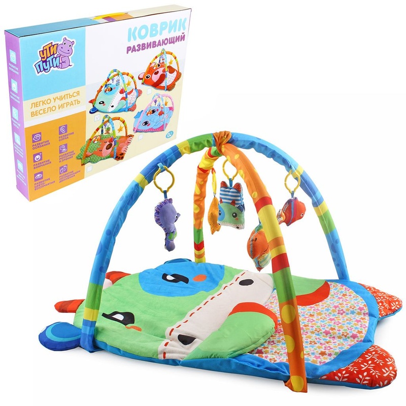 Нет в наличии ОтсутствуетВ наборе - коврик, с приятной бархатистой поверхностью, 2 съемные дуги, 5 игрушек-подвесок: мягкие игрушки с пищалкой.