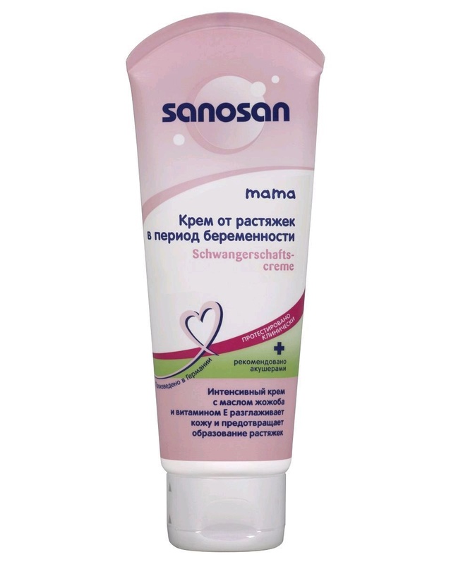Крем от растяжек 100 мл Саносан (Sanosan) содержит: масло жожоба, хитозан, вытяжку из семян гибискуса. Регулярное использование крема Саносан в период беременности предотвращает появление рубцов и растяжек. Благодаря натуральным компонентам, крем сохраняет эластичность кожи и восстанавливает ее тонус. Рекомендуется применение с 3-его месяца беременности: наносить на грудь, живот и бедра два раза в день. Без содержания красителей и парафинового масла, не вызывает аллергии. Срок годности 2,5 года. Объем 100 мл. Производитель: ООО "Mann&Schroeder GmbH", Германия.