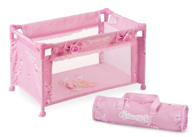 Манеж-кроватка – для куклы серии Мария, 50см, DeCuevas, 50023. Удобная кроватка поможет разнообразить сюжетно-ролевые игры ребенка с куклами. Она выполнена в нежном розовом цвете и отлично впишется в дизайн «девчачьей» комнаты. Изделие разработано специально для кукол DeCuevas из серии Мария, но подойдет для любых игрушек ростом до 45 см. Особенности: 1. Игрушка выполнена в виде манежа, который может быть использован как кроватка. 2. На дне манежа находится изображение милой девочки. 3. Узкие стенки кроватки закрыты прочной непрозрачной тканью в розовых тонах. 4. Широкие боковые стенки выполнены из сетки, которая хорошо пропускает воздух. Через них девочка может наблюдать за своим «малышом». 5. Корпус кроватки украшен бантиками с розочками из текстиля. 6. На ножках установлены шарики из гладкого материала, поэтому манеж не будет царапать пол. 7. Изделие легко складывается и помещается в специальную сумку. В таком виде её удобно хранить и транспортировать. 8. Манеж-кроватка подойдет для кукол, рост которых не превышает 45 см. 9. Сюжетно-ролевые игры развивают фантазию, воображение, помогают приобрести социальные навыки, воспитывают чувство ответственности. 10. Изделие изготовлено из прочных материалов высокого качества. Они безопасны для детского здоровья. Характеристики: Возраст: 3+. Материал: пластик, текстиль. В комплекте: кроватка, чехол-сумка. Размер игрушки: 50 x 29 x 30 см. Упаковка: картонная коробка. Размер упаковки: 10 х 9 х 34 см. Бренд: DeCuevas. Страна бренда: Испания.