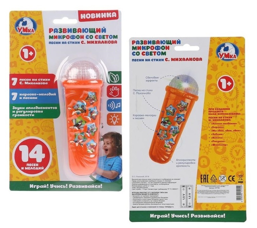 Микрофон развив. 14 песен и мелодий на стихи С.Михалкова,регулир. громкости.