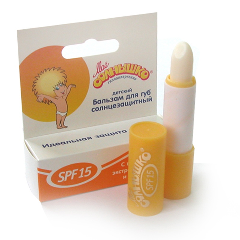 Мое солнышко Бальзам для губ детский солнцезащитный разработан для надежной защиты от солнечных ожогов нежной кожи губ малыша, а также чувствительных участков кожи, подвергающихся активному воздействию солнца – Т-зона (носик и лоб), ушки ребенка. Особенности: Водостойкий Подходит для детей с 3 месяцев Клинически проверено и рекомендовано ФГУ «МНИИ Педиатрии и детской хирургии Минздрава России». Эффективные и безопасные UVA/UVB фильтры обеспечивают длительную защиту от солнца. Витамин Е, экстракт ромашки, масло ши интенсивно смягчают кожу, предохраняют ее от пересушивания, воспаления и препятствуют потере влаги. Способ применения: Рекомендуется наносить бальзам на нежную кожу губ перед прогулкой и перед принятием солнечных ванн для защиты от вредных факторов окружающей среды. Повторять по мере необходимости.