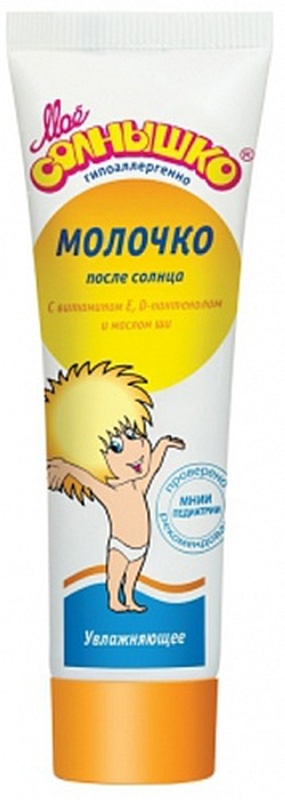 Мое солнышко Молочко детское после солнца специально разработано для восстановления нежной кожи ребенка после длительного пребывания на солнце. Особенности: Содержит эффективный комплекс витаминов и растительных экстрактов, который оказывает смягчающее и увлажняющее действие, успокаивает кожу в местах покраснений и нормализует ее защитные функции. Клинически проверено и рекомендовано ФГУ «МНИИ Педиатрии и детской хирургии Минздрава России». Масло ши и масло семян моркови обеспечивают дополнительную защиту от возможного УФ-облучения после загара. Способ применения: Небольшое количество средства нанесите на чистую кожу ребенка и распределите равномерно легкими скользящими движениями.