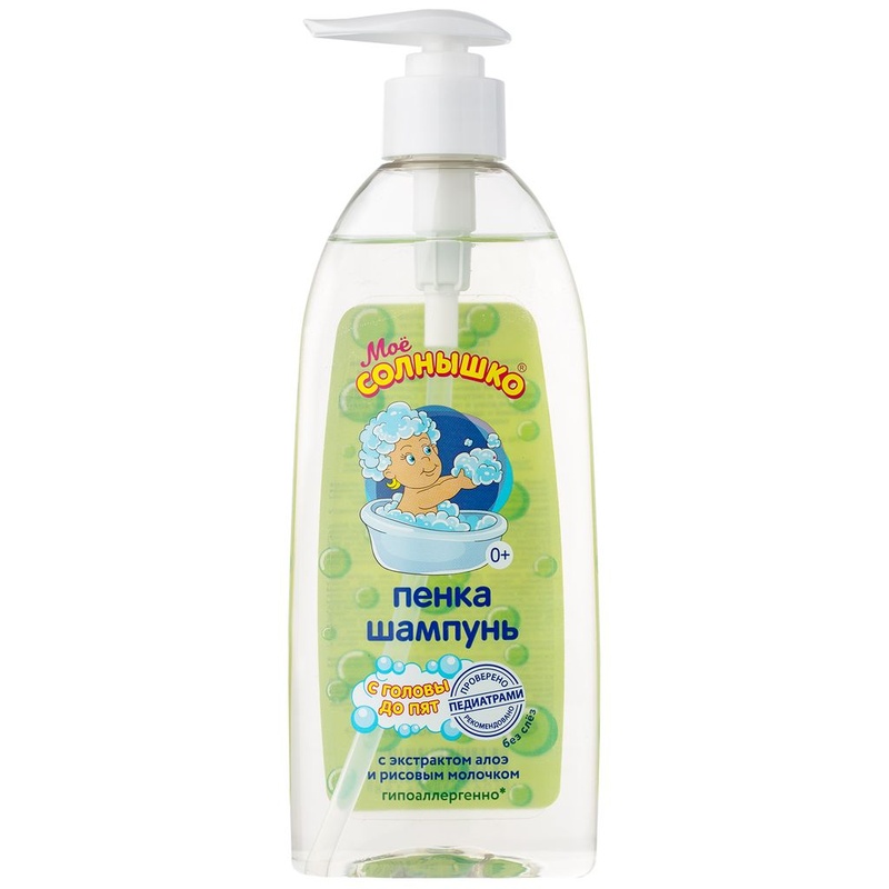 Мое солнышко Пенка-шампунь с головы до пят поможет каждой маме сделать купание ребенка не только приятным, но и полезным с головы до пяточек. Особенности: Безопасный, гипоаллергенный состав бережно очищает волосы и тело ребенка, не сушит кожу. Благодаря мягкой pH- формуле средство не щиплет глазки. Идеально подходит для ежедневного купания как малышей с первых дней жизни, так и детей постарше. Клинически проверено и рекомендовано ФГУ «МНИИ Педиатрии и детской хирургии Минздрава России». Рисовое молочко и экстракт алоэ увлажняют и питают кожу, а волосы делают мягкими и шелковистыми. Способ применения: нанесите ладонью или с помощью губки небольшое количество средства на влажные кожу и волосы малыша, вспеньте нежными массажными движениями и смойте теплой водой. Для создания воздушной пены вспеньте небольшое количество средства рукой или под струей воды.
