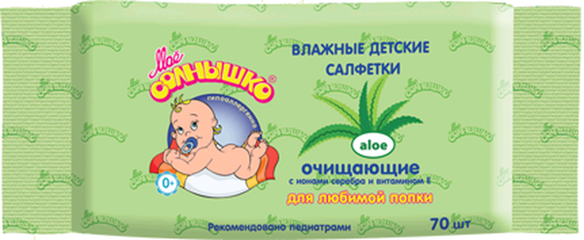 Нет в наличии ОтсутствуетМое солнышко Салфетки влажные очищающие при смене подгузника разработаны для ухода и нежного очищения кожи малыша при смене подгузника. Особенности: Салфетки делают ежедневную гигиену в любых условиях значительно комфортнее. Незаменимы дома, на прогулке, в поликлинике и в гостях. Легко и бережно удаляют загрязнения. Мягкая pH формула не сушит кожу. Не содержат спирта и мыла. Подходят для чувствительной кожи. Клинически проверено и рекомендовано ФГУ «МНИИ Педиатрии и детской хирургии Минздрава России». Экстракт алоэ и витамин Е защищают от воспаления и смягчают кожу; Ионы серебра оказывают мягкое антибактериальное действие, сохраняя естественную защиту кожи. Способ применения: Откройте клапан, достаньте необходимое количество салфеток, нежно протрите кожу малыша. Во избежание высыхания салфеток плотно закрывайте клапан.