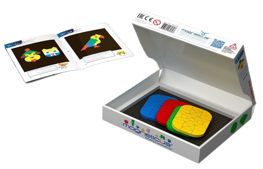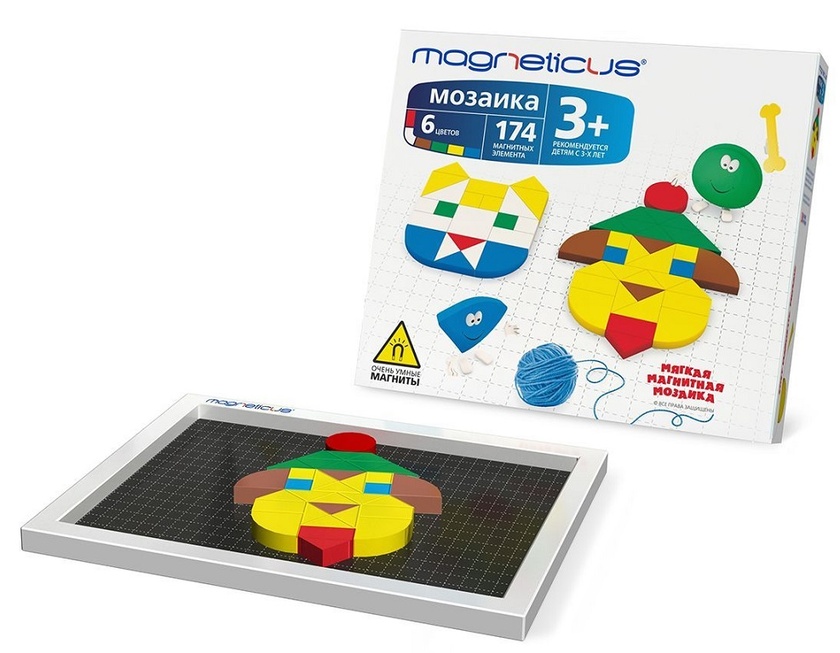 Нет в наличии ОтсутствуетМагнитная мозаика, 174 элемента, Magneticus, MM-0174 В этом наборе сеть все необходимое для интересного и полезного проведения досуга ребенка. Ведь ему достаточно открыть буклет с образцами и можно приступать к увлекательному процессу собирания мозаики. Причем ее детали имеют разную геометрическую форму и цвет, что очень важно для знакомства крохи с этими понятиями. Особенности: - В этом наборе предусмотрены яркие детали 6 цветов с магнитной основой. - Дети смогут соединять элементы друг с другом, получая в итоге мозаику с красочными изображениями различных животных и предметов (всего 30 вариантов). - Буклет с образцами значительно упростит задачу ребенку и поможет ему ориентироваться во время сборки. - В качестве основы для поделки используется темное игровое поле, которое удобно разлиновано и на него надёжно крепится магнитное покрытие деталей. - Элементы мозаики можно также использовать отдельно от набора, располагая их на дверце холодильника. - Детали изготовлены из высококачественного полимерного материала с магнитным слоем. - Составляющие набора удобно хранить в яркой коробке с клапаном. - Конструктор станет прекрасным тренажером для мелкой моторики рук и усидчивости юного непоседы. Примечание: перед началом использования мозаики необходимо разъединить элементы на отдельные детали разного цвета. Характеристики: Возраст: от 3 лет. Размер: 30 х 25 х 6 см. Количество деталей: 174 шт. В комплекте: детали мозаики, игровое поле, образцы картинок (30 шт.), коробка. Вес: 0,55 кг. Материал: полимер, пластик. металл. Упаковка: картонная коробка. Производитель: Magneticus. Страна бренда: Россия.
