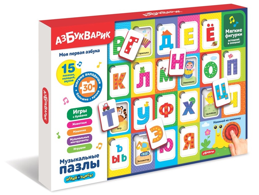 «Моя первая азбука» – это обучающий пазл-вкладыш для дошкольников. Он изготовлен из легкого мягкого материала EVA, с которым удобно и приятно играть. На больших вкладышах – буквы, а в окошках – картинки и слова. Ребенку будет очень интересно найти для каждой буквы свое окошко – а для этого нужно хорошо выучить алфавит. Такая игра способствует развитию логики, мышления, мелкой моторики. На коробке для родителей предлагаются увлекательные варианты занятий с карточками-вкладышами. Следуйте инструкциям, а также придумывайте свои увлекательные игры!