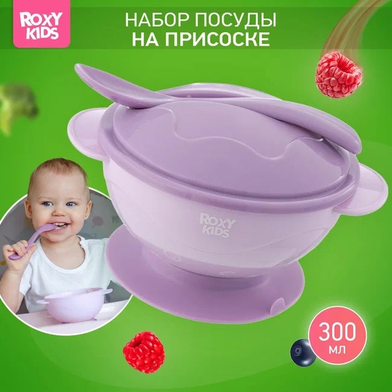 Набор для кормления: тарелка на присоске, крышка и ложка, лавандовый