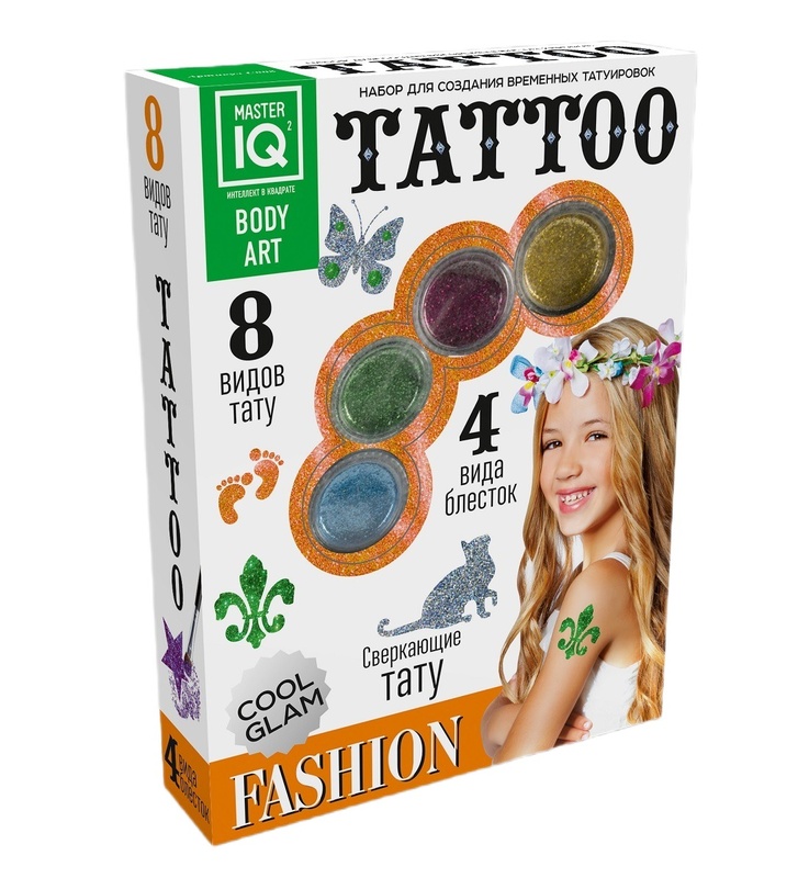 Стильные художественные тату набирают популярность. С помощью данного набора можно сделать временные тату с блестками и трафаретами в стиле Glamour. Все компоненты набора абсолютно безвредны для детской кожи и легко смоются мыльной губкой. Сверкающие модные тату принесут массу позитива и украсят любой праздник!