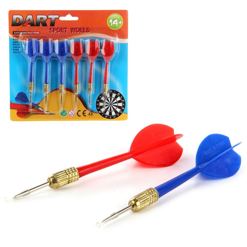 Нет в наличии ОтсутствуетНабор дротиков для игр в дартс. В комплекте входит 6 дротиков. Игрушка изготовлена из высококачественного и безопасного полимерного материала, есть элементы металла, упакована в блистер с отверстием. Размеры дротика: 2,5*2,5*10 см. Размеры игрушки в упаковке: 18*2,5*19 см.