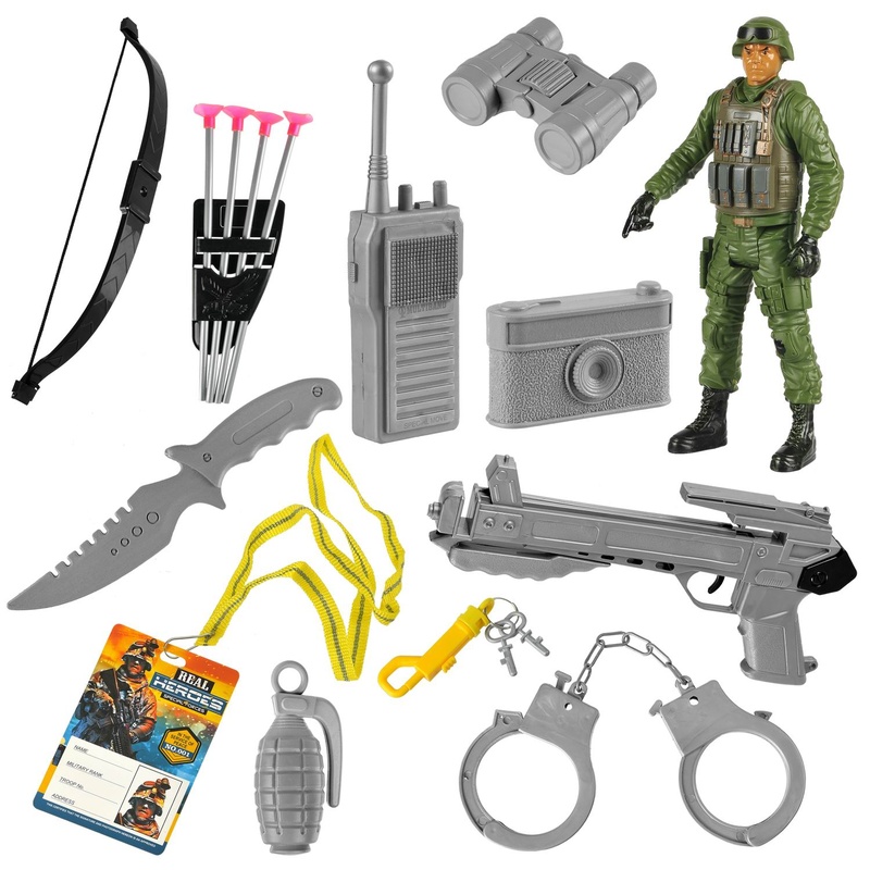 Нет в наличии ОтсутствуетИгровой набор военного способен порадовать мальчиков, в наборе есть фигурка солдата, а также много аксессуаров для вашего малыша, весь набор размещен в удобном рюкзаке, который можно взять с собой куда угодно!