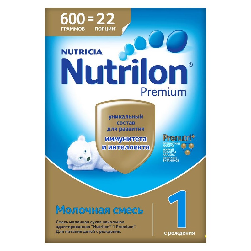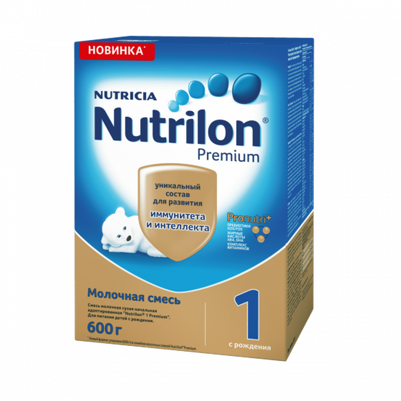 Молочная смесь Nutrilon 1 Premium с рождения 600 г. Nutrilon 1 Premium используется в питании малышей при недостатке грудного молока у мамы или отсутствии возможности грудного вскармливания. Благодаря комплексу ингредиентов Pronutri+, подобным тем, что содержатся в грудном молоке, смесь способствует развитию иммунитета и интеллекта ребенка, помогая развиваться с первых дней жизни. Комплекс Pronutri+ включает: жирные кислоты ARA, DHA, пребиотики Gos/Fos, комплекс витаминов. Улучшенный комплекс жирных кислот ARA, DHA способствует развитию интеллекта. Пребиотики Gos/Fos помогают развитию собственной здоровой микрофлоры кишечника, а также поддерживают иммунитет малыша, помогая снижать риск возникновения аллергии и инфекций. Сбалансированный комплекс витаминов и минералов разработан специально с учетом потребностей детей до года, способствует правильному росту ребенка. Особенности: Комплекс Pronutri+. Пребиотики Gos/Fos. Жирные кислоты ARA/DHA. Комплекс витаминов. Состав: деминерализованная молочная сыворотка, смесь растительных масел (пальмовое, рапсовое, кокосовое, подсолнечное, Mortierella alpina), лактоза, обезжиренное молоко, пребиотики (галактоолигосахара, фруктоолигосахара), концентрат белков молочной сыворотки Торговая марка Nutrilon