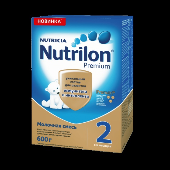 Молочная смесь Nutrilon 2 Premium с 6 мес. 600 г. Nutrilon 2 Premium используется в питании малышей при недостатке грудного молока у мамы или отсутствии возможности грудного вскармливания. Благодаря комплексу ингредиентов Pronutri+, подобным тем, что содержатся в грудном молоке, смесь способствует развитию иммунитета и интеллекта ребенка, помогая развиваться. Комплекс Pronutri+ включает: жирные кислоты ARA, DHA, пребиотики Gos/Fos, комплекс витаминов. Улучшенный комплекс жирных кислот ARA, DHA способствует развитию интеллекта. Пребиотики Gos/Fos помогают развитию собственной здоровой микрофлоры кишечника, а также поддерживают иммунитет малыша, помогая снижать риск возникновения аллергии и инфекций. Сбалансированный комплекс витаминов и минералов разработан специально с учетом потребностей детей до года, способствует правильному росту ребенка. Особенности: Комплекс Pronutri+. Пребиотики Gos/Fos. Жирные кислоты ARA/DHA. Комплекс витаминов. Полный состав продукта: лактоза, смесь растительных масел (пальмовое, рапсовое, кокосовое, подсолнечное, Mortierella alpina), мальтодекстрин, обезжиренное молоко, концентрат белков молочной сыворотки, пребиотики (галактоолигосахара, фруктоолигосахара), минеральные вещества, рыбий жир, витаминный комплекс, холин, таурин, соевый лецитин, микроэлементы, инозит, L-триптофан, нуклеотиды, L-карнитин. Торговая марка Nutrilon