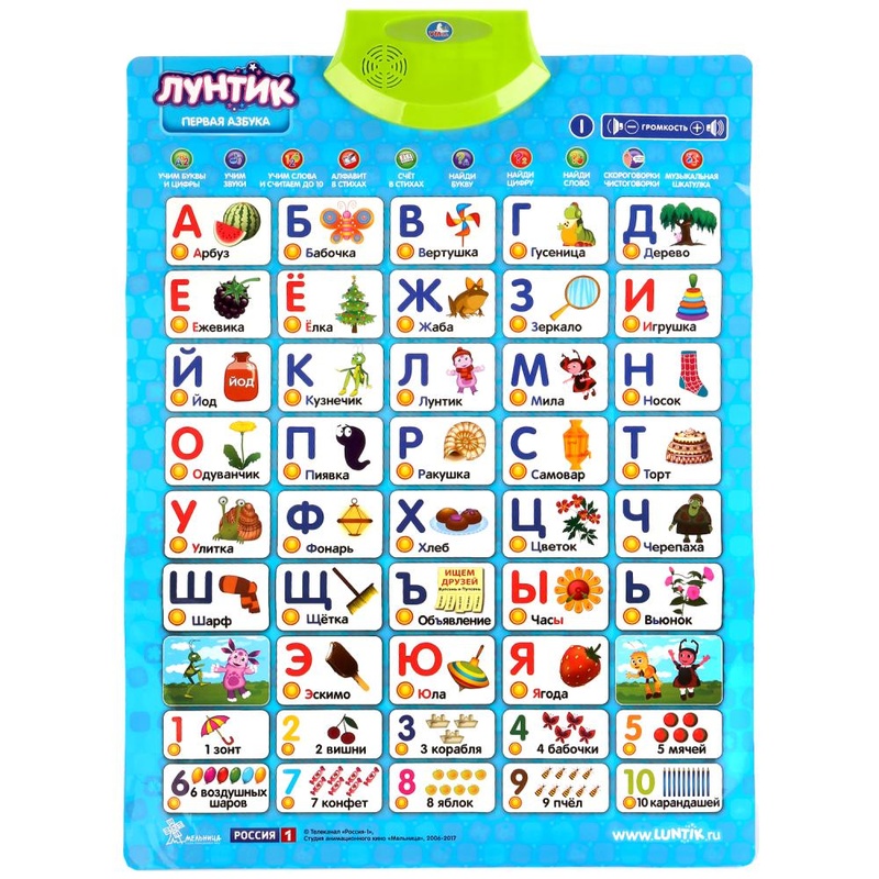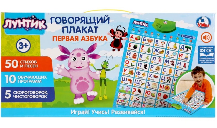 Обучающий плакат "Лунтик" Первая Азбука (50 стихов, 5 скороговорок) на бат.