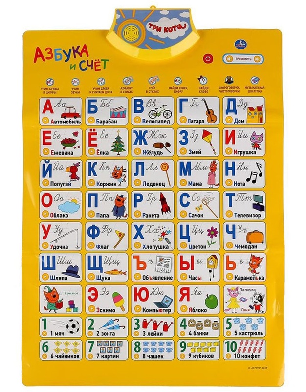 Обучающий плакат "Три Кота" Азбука и счет (в стихах, 10 скороговорок, 7 песен) в кор.