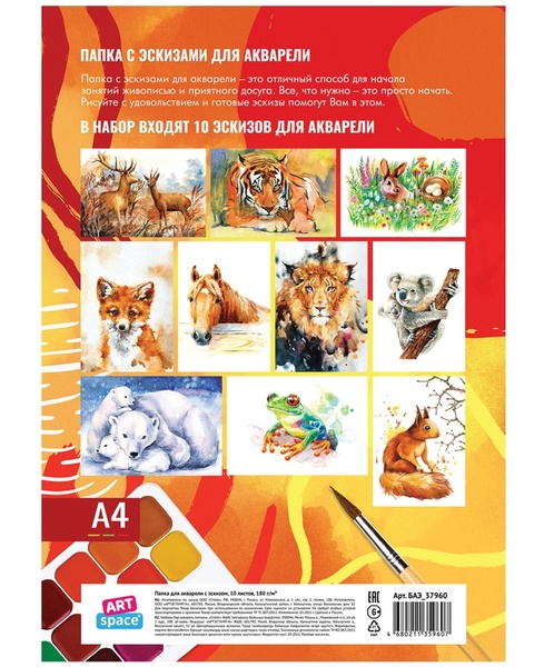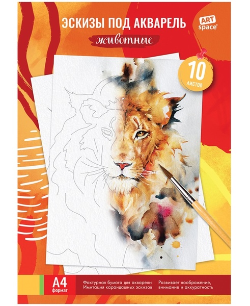 Папка для акварели, с эскизом, 10л., А4 "Животные"