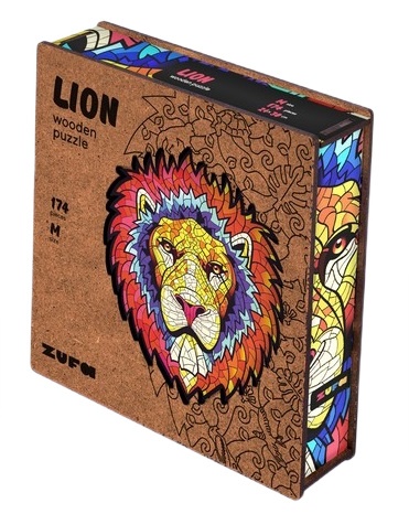 Деревянный пазл с двухслойной крышкой "Лев" размер M, в/к 16,5*16,5*4 см
