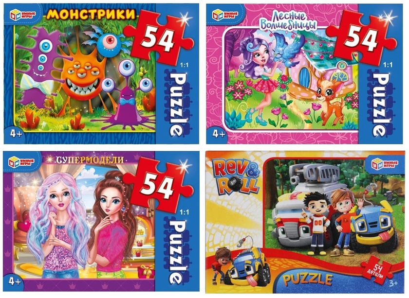 Пазлы 54Д "Микс" супермодели/лесные волшебницы/монстрики/рев и рол.