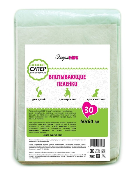 Пеленки впит. "Элара KIDS" супер 60*60 (30шт)