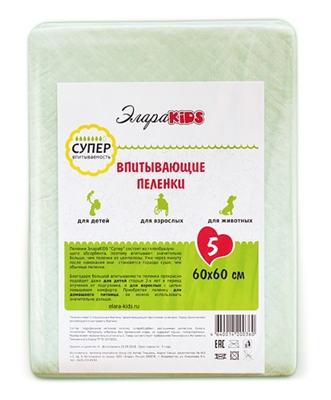 Пеленки впит. "Элара KIDS" супер 60*60 (5шт)