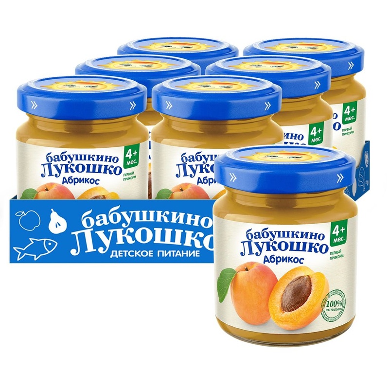 Бабушкино лукошко Пюре Абрикос с 4 мес., 100 г Пюре фруктовое гомогенизированное стерилизованное для питания детей раннего возраста • - без сахара • - монопродукт • - с 4 месяцев Состав продукта Пюре из абрикосов. Без ГМО. Без добавления сахара. Содержит сахара природного (естественного) происхождения. Рекомендации по употреблению Пюре рекомендуется употреблять, начиная с 0,5 чайной ложки 2 раза в день, постепенно увеличивая до 100 г в день. Продукт готов к употреблению. Разогревать продукт в соответствии с правилами эксплуатации бытовых приборов. Упаковка Продукт расфасован в стеклянные баночки массой нетто 100г. При первом вскрытии должен быть ясно слышен ХЛОПОК! Пищевая ценность В 100 г продукта: углеводы – 18,0 г; минеральные вещества: калий – 70-250 мг; энергетическая ценность - 70 ккал/290 кДж. Срок хранения Закрытая баночка хранится при температуре от +2°С до +25°С (без резких колебаний) и относительной влажности воздуха не более 75% в течение 24 месяцев с даты изготовления. Содержимое открытой баночки может храниться в холодильнике не более 24 часов. Полезные свойства Абрикосы имеют полезный состав для детского организма: кальций участвует в формировании и развитии костной системы; магний нормализует обменные процессы; калий питает сердечную мышцу; железо участвует в функции кроветворения, насыщает кровь кислородом, повышает уровень гемоглобина; фосфор стимулирует мозговую деятельность, улучшает память; аскорбиновая кислота укрепляет иммунитет; витамины группы В участвуют в усвоении железа; каротин положительно влияет на состояние волос, ногтей, кожных покровов. Абрикосы помогают ребенку нормализовать процесс пищеварения и избавиться от запоров. Фрукты улучшают аппетит малыша, благотворно влияют на развитие нервной и сердечно-сосудистой систем, стимулируют рост мышечной ткани и др. Они способствуют лечению метеоризма и дисбактериоза кишечника. Бренд Бабушкино лукошко Страна-производитель Россия