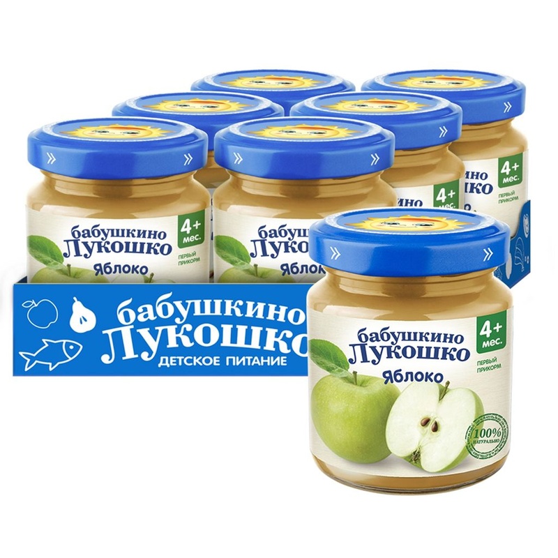 Бабушкино лукошко Пюре Яблоко с 4 мес., 100 г Пюре фруктовое гомогенизированное стерилизованное для питания детей раннего возраста Рекомендуется использовать в качестве первого прикорма малыша • - без сахара • - монопродукт • - с 4 месяцев • - низкоаллергенный продукт Состав продукта Пюре из яблок. Без ГМО. Без добавления сахара. Содержит сахара природного (естественного) происхождения. Рекомендации по употреблению Пюре рекомендуется употреблять начиная с 0,5 чайной ложки 2 раза в день, постепенно увеличивая до 100 г в день. Продукт готов к употреблению. Разогревать продукт в соответствии с правилами эксплуатации бытовых приборов. Упаковка Продукт расфасован в стеклянные баночки массой нетто 100г. При первом вскрытии должен быть ясно слышен ХЛОПОК! Пищевая ценность В 100 г продукта: углеводы - 15,5 г; минеральные вещества: калий - 80 -250 мг; энергетическая ценность - 60 ккал/250кДж. Срок хранения Закрытая баночка хранится при температуре от +2°С до +25°С (без резких колебаний) и относительной влажности воздуха не более 75% в течение 24 месяцев с даты изготовления. Содержимое открытой баночки может храниться в холодильнике не более 24 часов. Полезные свойства Яблоко - источник фруктовых кислот, железа, витамина С. Сочетание железа и витамина С способствует наилучшему всасыванию железа в кишечнике, что является профилактикой анемии. Пектины и фруктовые кислоты мягко стимулируют деятельность кишечника. Бренд Бабушкино лукошко Страна-производитель Россия