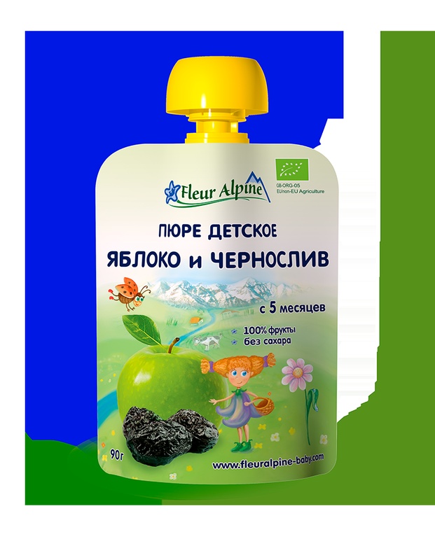 Пюре детское ЧЕРНОСЛИВ рекомендуется детям с 4 месяцев Пюре детское ЯБЛОКО и ЧЕРНОСЛИВ рекомендуется детям с 5 месяцев Состав: пюре из яблок*, пюре из чернослива* *органическое сельское хозяйство Особенности продукции: · 100% фрукты · Без добавления крахмала, муки, соли, сахара, витаминов и воды · Без ароматизаторов, красителей и консервантов · Без ГМО Детское пюре Fleur Alpine ORGANIC ЯБЛОКО И ЧЕРНОСЛИВ производится из гипоаллергенных сортов яблок и из спелых органических слив, высушенных на солнце. Яблоки богаты природными сахарами, органическими кислотами, витаминами и микроэлементами. Железо в сочетании с витамином С хорошо всасывается в кишечнике, способствуя профилактике анемии. Пектины и органические кислоты мягко стимулируют деятельность кишечника. Калий и магний укрепляют сердечно-сосудистую систему. Чернослив богат минералами, витаминами, органическими кислотами и микроэлементами. Высокое содержание калия способствует профилактике сердечно-сосудистых заболеваний. Чернослив оказывает легкий послабляющий эффект, действуя очень деликатно и рекомендуется при запорах и атонии кишечника. Способ употребления: Продукт готов к употреблению. Открыть упаковку и выдавить необходимое количество пюре прямо в ложку или тарелку. Начинать кормить с 1 чайной ложки 2 раза в день, постепенно увеличивая объем в соответствии с возрастом ребенка и рекомендациями педиатра. Пищевая ценность в 100 г продукта: Энергетическая ценность - 42,7 ккал Углеводы – 10,5 г Белки - 0,53 г Массовая доля растворимых сухих веществ – 18% Минеральные вещества: калий 226 мг Срок годности: 15 месяцев с даты изготовления, указанной на упаковке Условия хранения: Хранить при температуре от 0°С до +25°С и относительной влажности не более 75%. После вскрытия хранить с закрытой крышкой в холодильнике не более 24 часов. Масса нетто 90 г · Бренд Fleur Alpine ·
