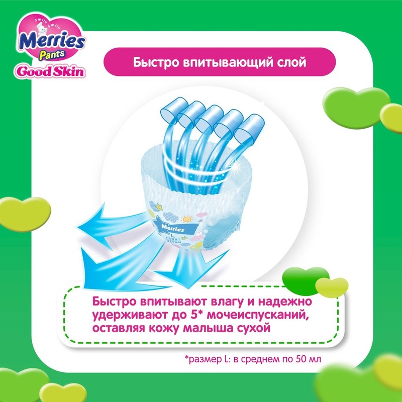 Подгузники -трусики "Merries" Good Skin L 9-14 кг (44 шт) / 4